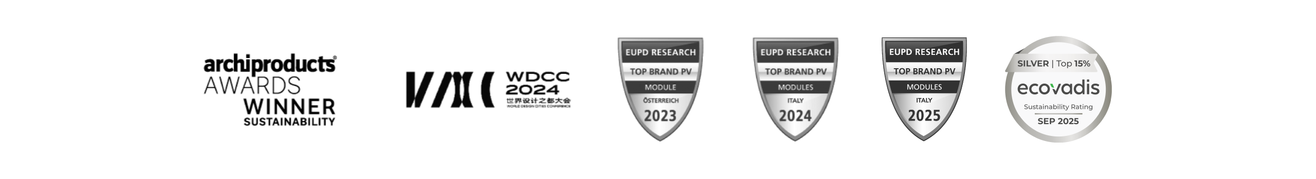 • 300 moduli Silver scelti per riflettere le tonalità metalliche delle coperture in titanio.