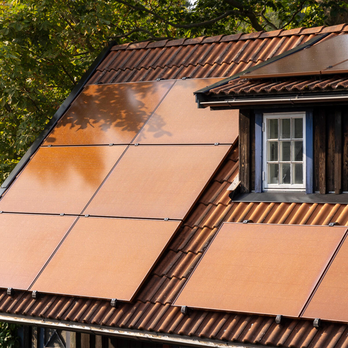 • 19 moduli color terracotta, scelti per fondersi con le tegole originali e con l’estetica del tetto.